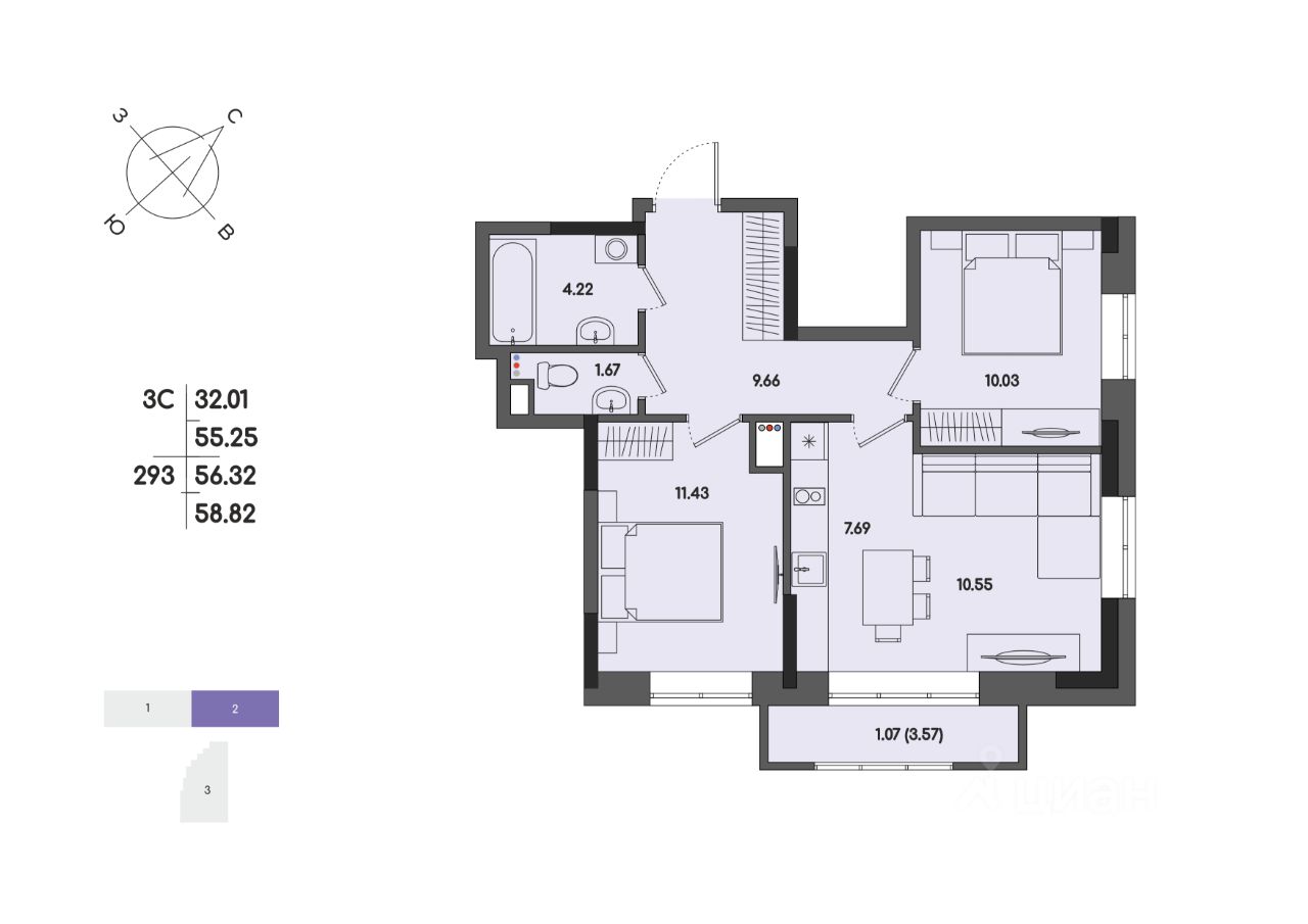 Общая площадь56,32 м2