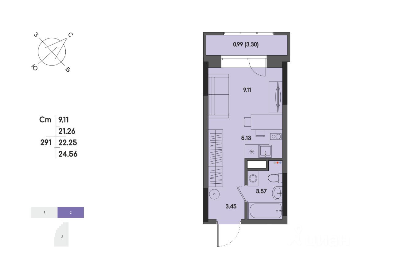 Общая площадь22,25 м2