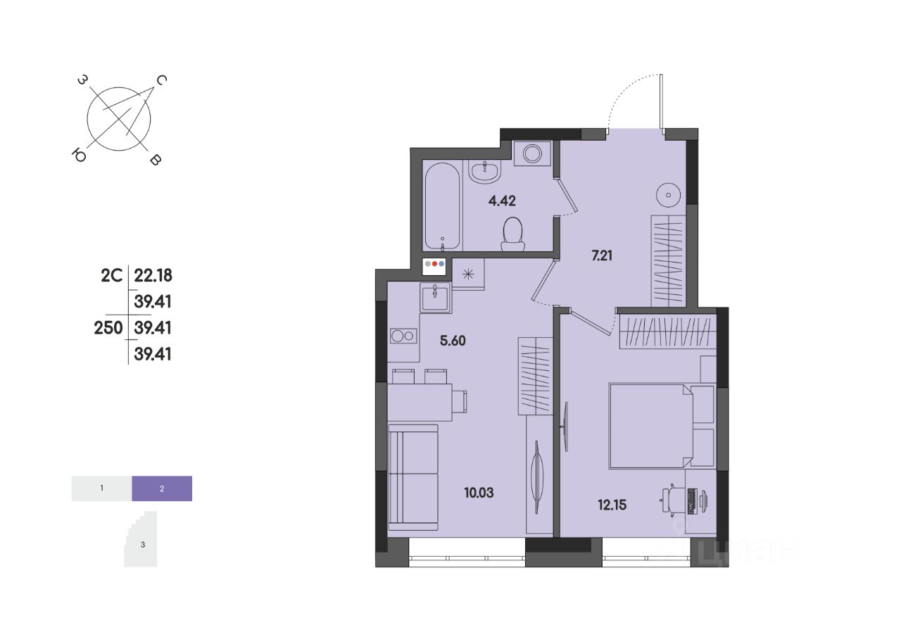 Общая площадь39,41 м2